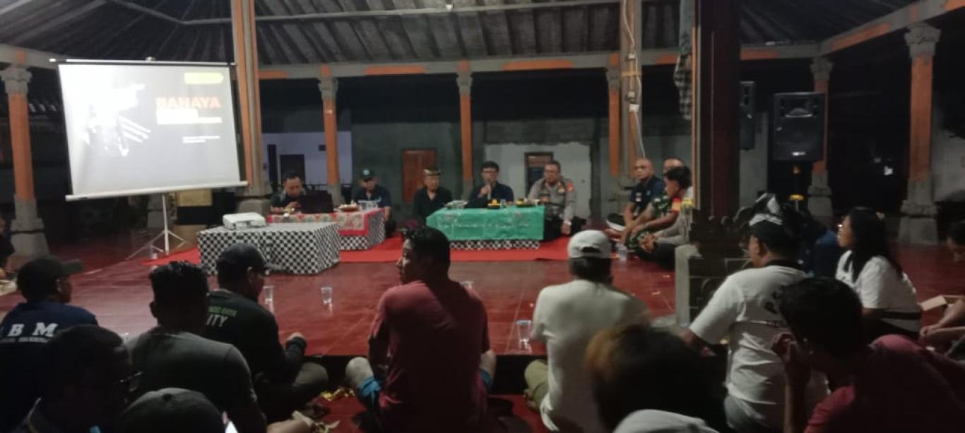 Bertempat di Balai Adat Desa Bubunan, IBM Satya Wacana Desa Bubunan bersama Kapolsek Seririt ,Kepala Desa Bubunan, Bendesa Adat serta Anggota dan Relwan IBM melaksanakan Rapat koordinasi P4GN. Dalam rapat disampaikan bagaimana IBM Satya Wacana Desa Bubunan sudah melaksanakan tugas dengan baik harus ditingkatkan terus menjadi lebih baik lagi. Sebagaimana diketahui Narkoba Adalah Musuh Negara yang harus di berantas habis,I BM Satya Wacana sebagai Garda terdepan dalam memberantas Narkoba di Wilayah Desa Bubunan harus terus bergerak aktif jika ada informasi dari warga Masyarakat yang mengetahui adanya indikasi penyalahgunaan barang terlarang yang namanya Narkoba di Desa Bubunan serta IBM Satya Wacana diharapkan terus melaksanakan sosialisasi ke warga Masyarakat baik diacara Yadnya seperti acara odalan di pura ,merajan merajan dadia, Manusia Yadnya dan di acara Rapat rutin tiap Tempekan. Bubunan BERSINAR ( Bersih dari Narkoba) “WAR ON DRUGS “.( Late POST)
